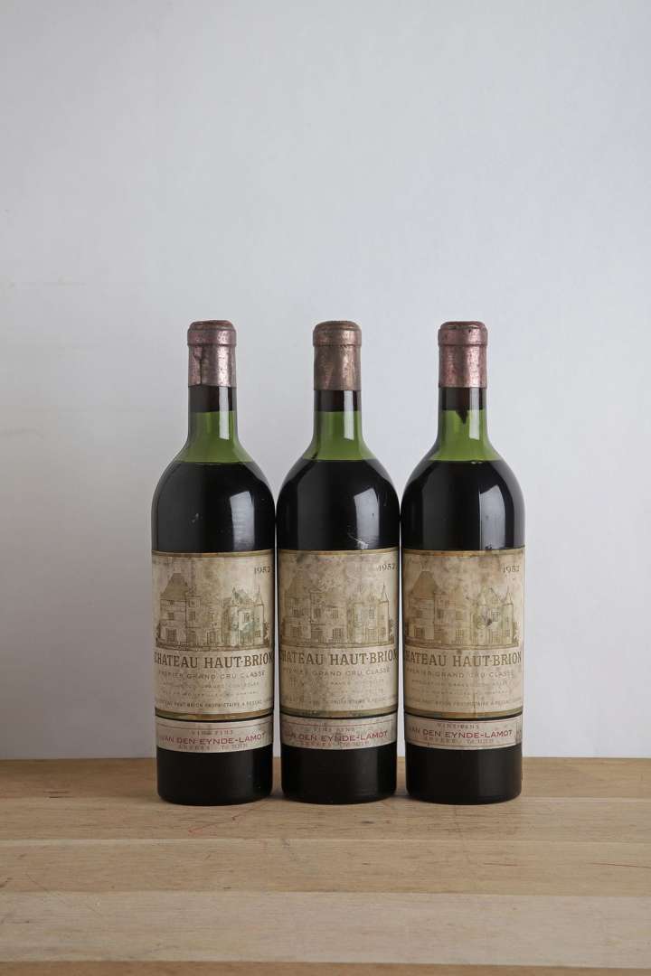 3 B CHÂTEAU HAUT-BRION (H.E| e.t.h| bandeaux négoce Van den Eyden - Labot à Anvers| c.s| bouchons et capsules estampés) - 1952 - GCC1 Graves