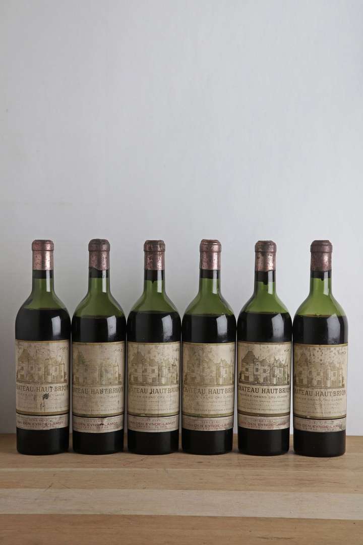 6 B CHÂTEAU HAUT-BRION (M.E. à B.E| e.t.h| bandeaux négoce Van den Eyden - Labot à Anvers| c.s légèrement bombées| bouchons et capsules estampés) - 1952 - GCC1 Graves