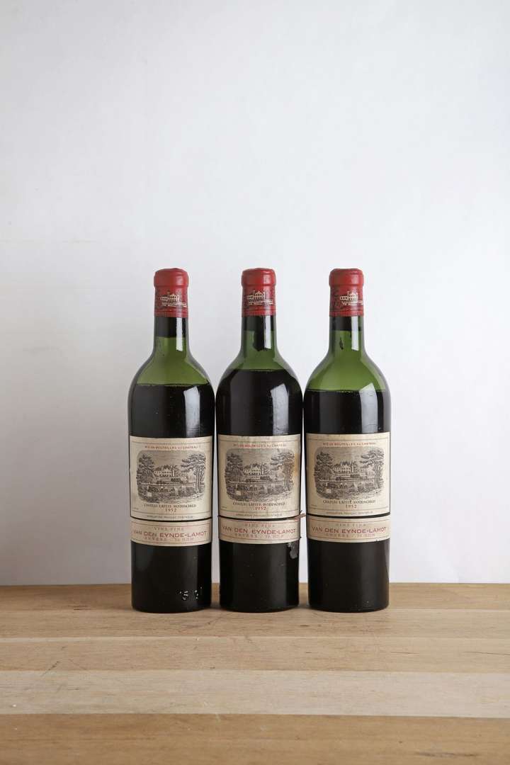 3 B CHÂTEAU LAFITE ROTHSCHILD (1 M.E.+| 1 B.E.+ et 1 B.E| e.t.h. légères| bandeaux négoce Van den Eynde - Labot à Anvers| 1 c.l.a. au sommet| bouchons et capsules estampés) - 1952 - GCC1 Pauillac