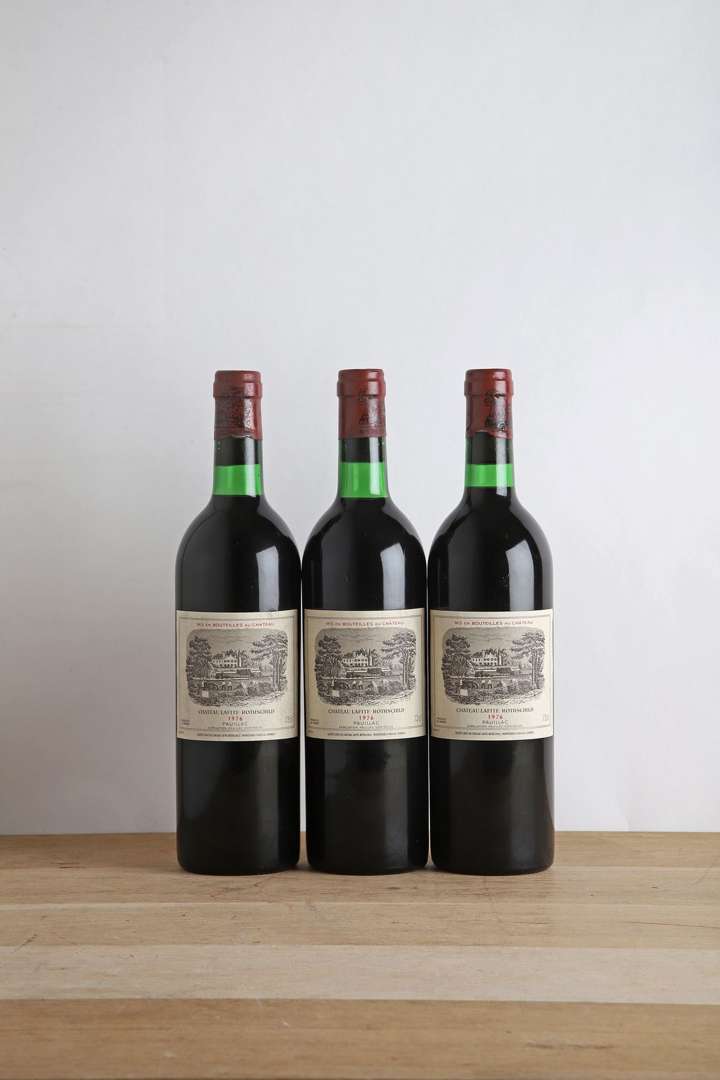 3 B CHÂTEAU LAFITE ROTHSCHILD (2 B.G.| étiquettes plissées| capsules avec bas de jupes abimées) - 1976 - GCC1 Pauillac