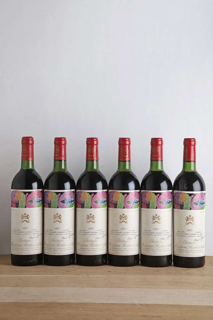 6 B CHÂTEAU MOUTON ROTHSCHILD (1 B.G| 2 T.L.B.+| 2 T.L.B. et 1 T.L.B.-) - 1975 - GCC1 Pauillac