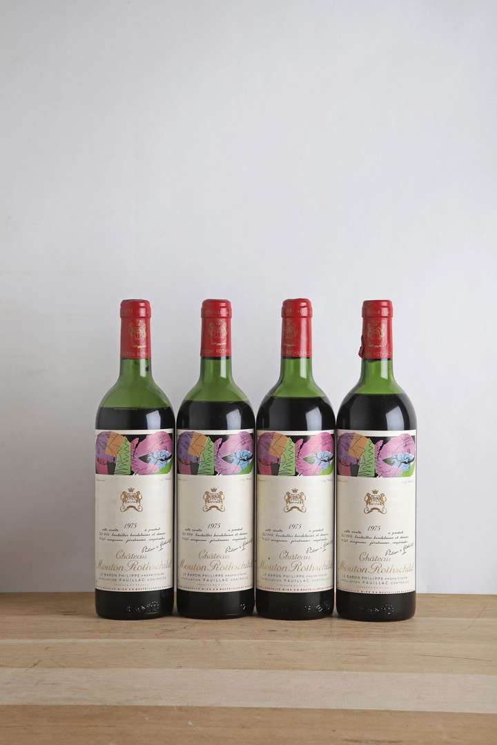 4 B CHÂTEAU MOUTON ROTHSCHILD (2 H.E| 1 M.E.+ et 1 M.E.-| 1 e.l.a| 1 c.a. bas de jupe) - 1975 - GCC1 Pauillac
