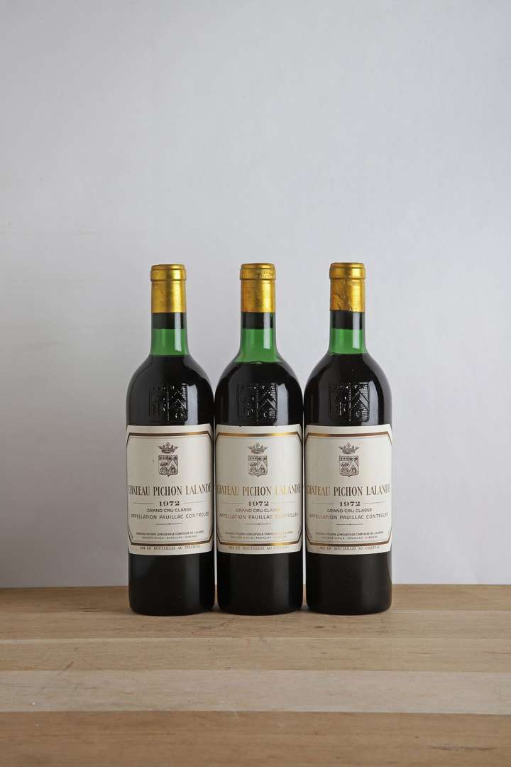 3 B CHÂTEAU PICHON COMTESSE DE LALANDE (2 T.L.B| 1 H.E.+| e.t.h. légères dont 1 e.l.a.) - 1972 - GCC2 Pauillac