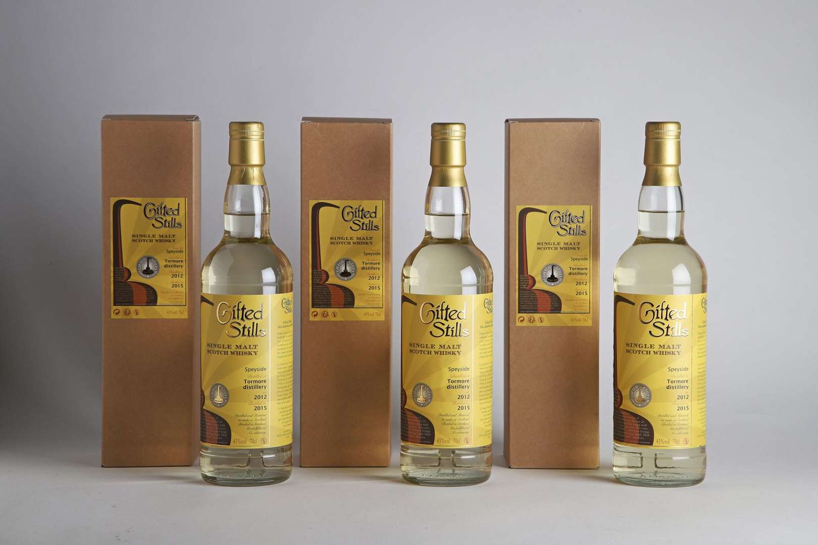 3 B SPEYSIDE SINGLE MALT SCOTCH WHISKY GIFTED STILLES 70 cl 43% (étuis d'origine) (distillé en 2012| mise en bouteille en 2015) - 2012 - Tormore
