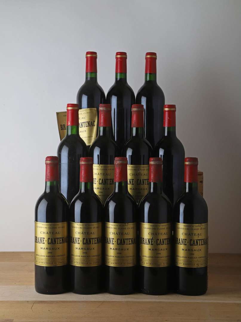 12 B CHÂTEAU BRANE-CANTENAC (2 e.t.h. légères| 2 e.a| 1 s.e| 4 étiquettes décollées) - 1990 - GCC2 Margaux