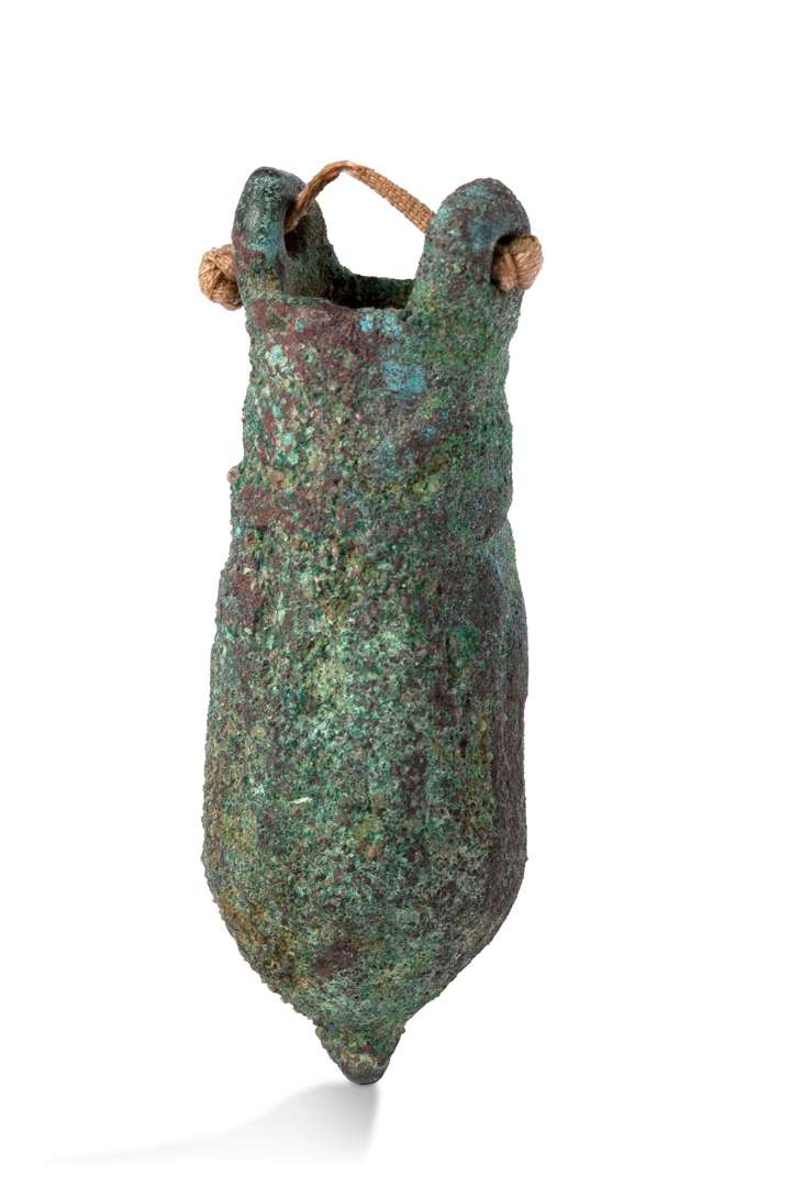 en bronze, ornée d'un décor en bas relief (illisible).