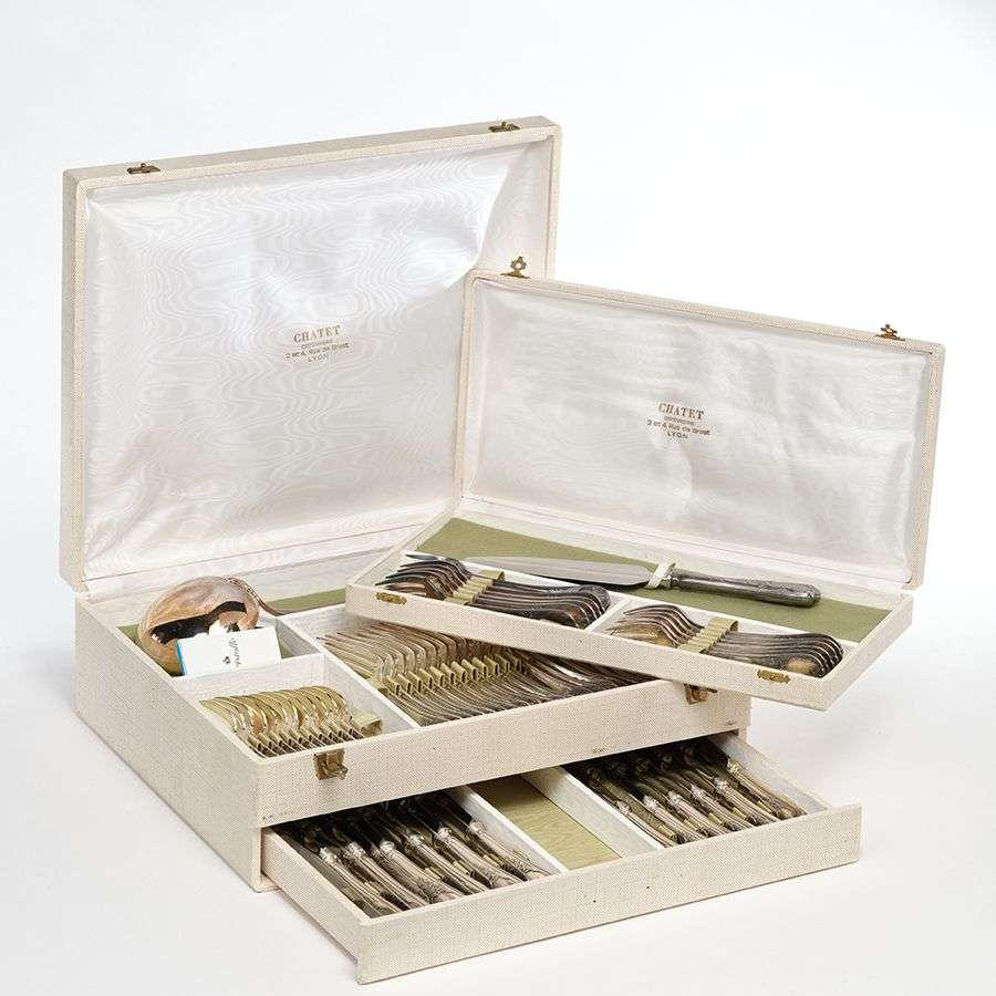 Partie de ménagère en métal argenté modèle Marly composée de 74 pièces dont : ~