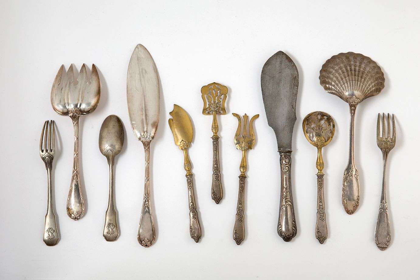 - un lot composé d'une pelle à fraise, d'une fourchette et d'un couteau. ~