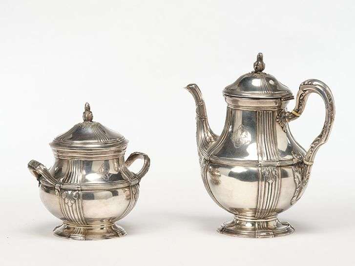comprenant une théière et un pot à sucre,. Les panses monogrammées CG.~