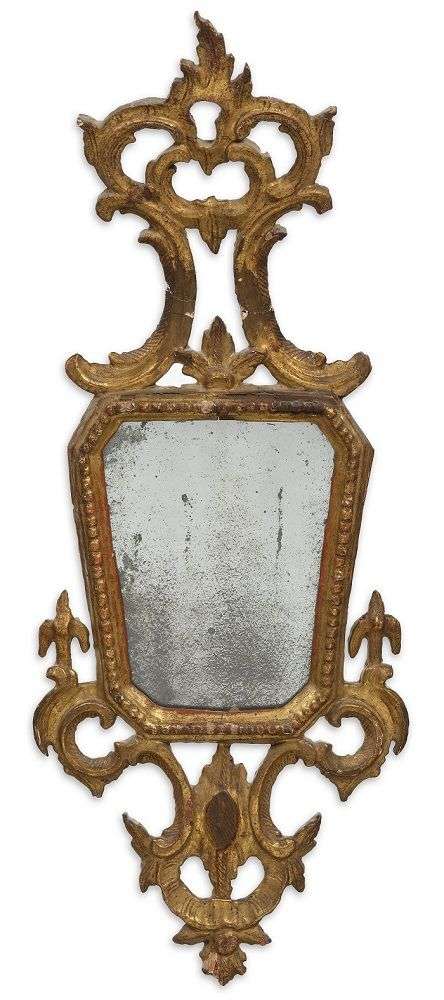 en bois sculpté et doré, grand fronton penché