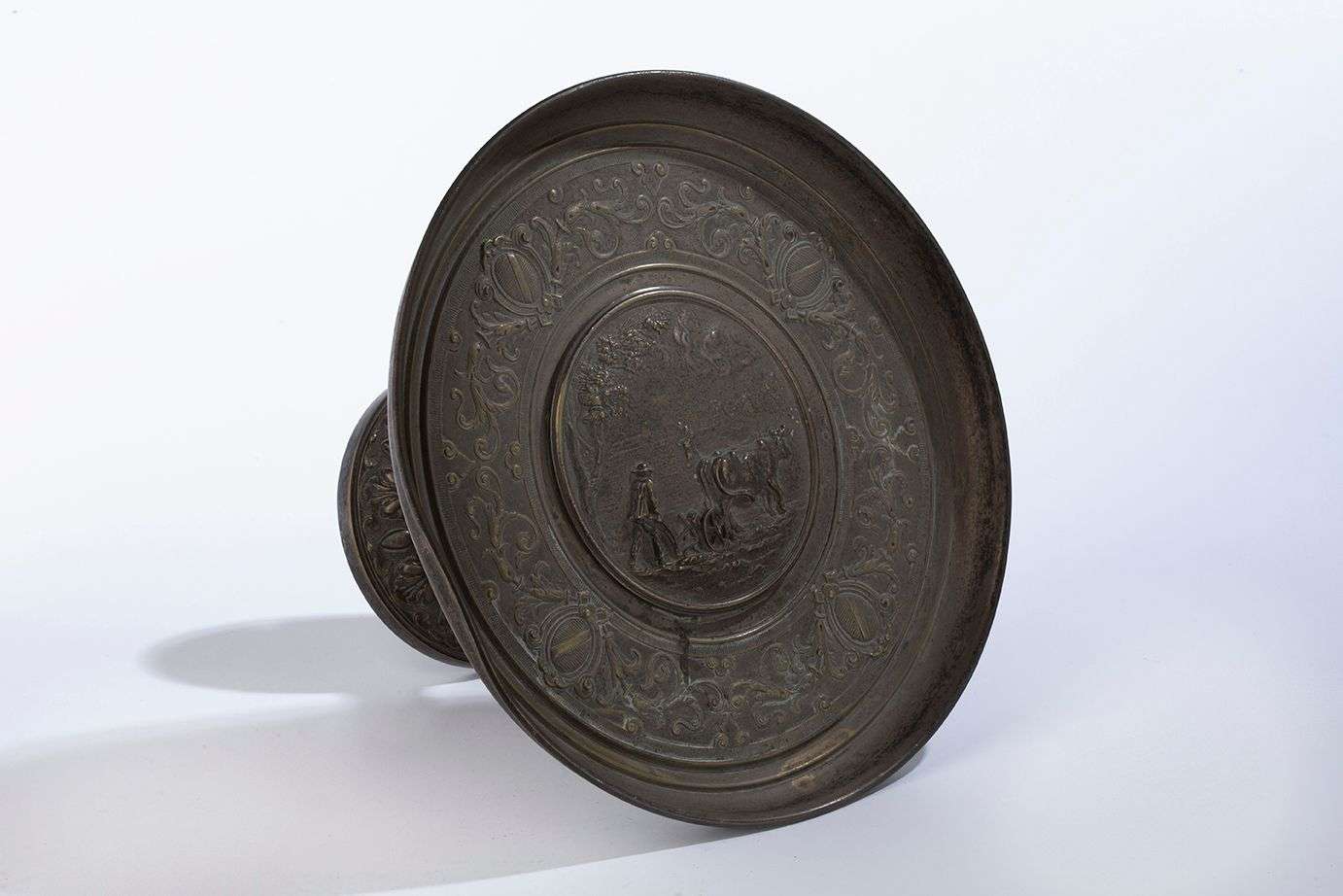 comprenant une coupe en métal, à décor composite.