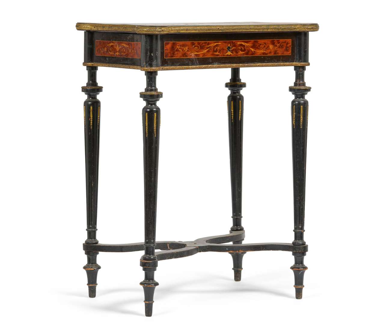 en bois noirci a décor marqueté. Le plateau