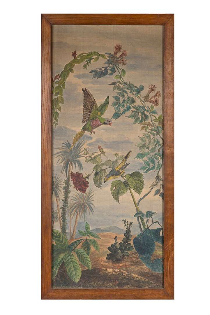 en toile ornés d'un décor peint de volatiles sur des branches.