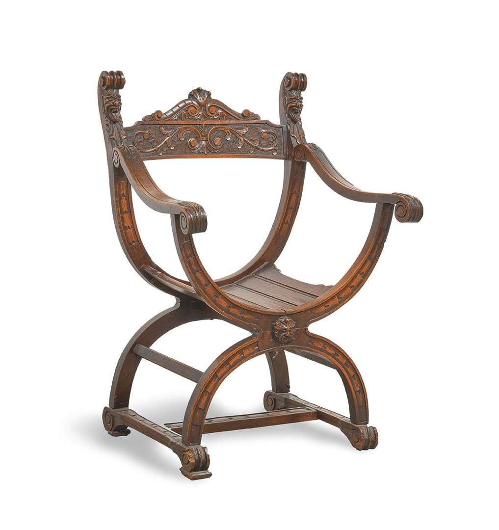 dit aussi Dagobert en bois sculpté à décor de mascarons et grotesques.~
