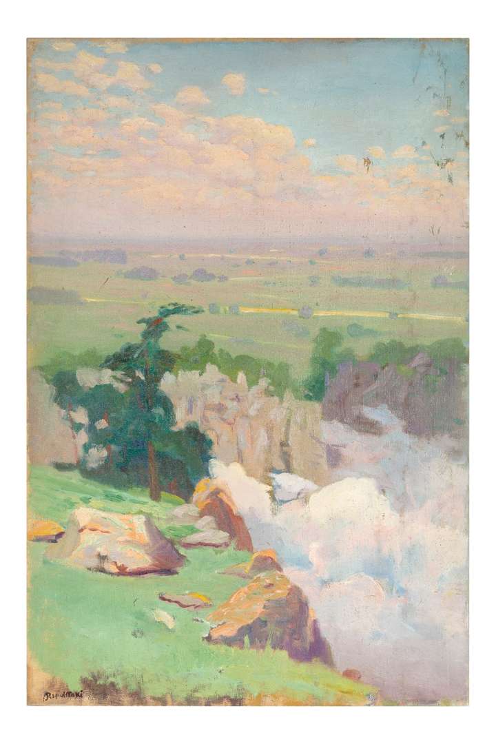 Evgeni Ivanovitch Pospolitaki, dit Eugène Pospolitaki, est né en 1852 à Temriouk, dans le Sud-Ouest de la Russie. Il est le fils d'un sergent de l'armée russe. À 21 ans, après une formation en génie civil et en bâtiment, il s'inscrit à l'Académie des Beaux-arts de Saint-Pétersbourg. Une fois diplômé, il se rend à Moscou où il séjourne de 1875 à 1879. La Galerie Tretiakov lui fait l'acquisition d'un tableau peint en 1877 : "Le soir". L'année suivante, l'artiste prend ses quartiers à Paris, alors capitale des arts. Sensible au travail sur la lumière engagé par les Impressionnistes, il peint des bords de mer avec une palette divisée de tons vifs. De retour en Russie, Pospolitaki participe au Salon des amateurs d'art de Moscou aux côtés de Viktor Mikhaïlovitch Vasnetsov (1848-1926), Isaac Ilitch Levitan (1860-1900) ou encore Valentin Aleksandrovitch Serov (1865-1911). Il regagne Paris en 1889 et prête, pour l'Exposition universelle, une toile intitulée "Sommet de l'Elbrouss | - Caucase". Il reçoit à cette occcccasion une Mention honorable. En 1892, il présente "Le mont Uzhba" à la XIIe Exposition périodique de la Société Moscovite des Beaux-Arts. L'année suivante, il s'installe à Iekaterinodar (Krasnodar) afin d'enseigner à la première Académie de peinture pour femmes. Conjointement à cette activité et grâce à l'héritage de son père, Pospolitaki fonde la première école privée de dessin au rez-de-chaussée de sa maison. L'école sera reprise en 1905 par l'un de ses élèves, un certain Stupnikov. Pospolitaki retourne ensuite à Paris et s'essaie à la critique d'art. Quatre années plus tard, en Russie, il expose une série de paysages du Caucase à la IVe Exposition de peinture de la Société des artistes sans parti de Saint-Pétersbourg. De nouveau à Paris en 1911, l'artiste peint "La Tour Clovis (Paris), ancienne tour de l'Abbaye Sainte-Geneviève, peinte depuis l'arrière du Panthéon". À l'arrière du tableau, une étiquette mentionne le 4e Salon du mobilier, section Beaux-Arts (Paris, Grand Palais des Champs-Élysées). La fin de la vie de Pospolitaki est peu documentée. Il a probablement vécu à Saint-Pétersbourg jusqu'à sa mort vers 1915.