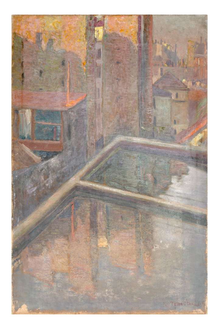 Evgeni Ivanovitch Pospolitaki, dit Eugène Pospolitaki, est né en 1852 à Temriouk, dans le Sud-Ouest de la Russie. Il est le fils d'un sergent de l'armée russe. À 21 ans, après une formation en génie civil et en bâtiment, il s'inscrit à l'Académie des Beaux-arts de Saint-Pétersbourg. Une fois diplômé, il se rend à Moscou où il séjourne de 1875 à 1879. La Galerie Tretiakov lui fait l'acquisition d'un tableau peint en 1877 : "Le soir". L'année suivante, l'artiste prend ses quartiers à Paris, alors capitale des arts. Sensible au travail sur la lumière engagé par les Impressionnistes, il peint des bords de mer avec une palette divisée de tons vifs. De retour en Russie, Pospolitaki participe au Salon des amateurs d'art de Moscou aux côtés de Viktor Mikhaïlovitch Vasnetsov (1848-1926), Isaac Ilitch Levitan (1860-1900) ou encore Valentin Aleksandrovitch Serov (1865-1911). Il regagne Paris en 1889 et prête, pour l'Exposition universelle, une toile intitulée "Sommet de l'Elbrouss | - Caucase". Il reçoit à cette occcccasion une Mention honorable. En 1892, il présente "Le mont Uzhba" à la XIIe Exposition périodique de la Société Moscovite des Beaux-Arts. L'année suivante, il s'installe à Iekaterinodar (Krasnodar) afin d'enseigner à la première Académie de peinture pour femmes. Conjointement à cette activité et grâce à l'héritage de son père, Pospolitaki fonde la première école privée de dessin au rez-de-chaussée de sa maison. L'école sera reprise en 1905 par l'un de ses élèves, un certain Stupnikov. Pospolitaki retourne ensuite à Paris et s'essaie à la critique d'art. Quatre années plus tard, en Russie, il expose une série de paysages du Caucase à la IVe Exposition de peinture de la Société des artistes sans parti de Saint-Pétersbourg. De nouveau à Paris en 1911, l'artiste peint "La Tour Clovis (Paris), ancienne tour de l'Abbaye Sainte-Geneviève, peinte depuis l'arrière du Panthéon". À l'arrière du tableau, une étiquette mentionne le 4e Salon du mobilier, section Beaux-Arts (Paris, Grand Palais des Champs-Élysées). La fin de la vie de Pospolitaki est peu documentée. Il a probablement vécu à Saint-Pétersbourg jusqu'à sa mort vers 1915.