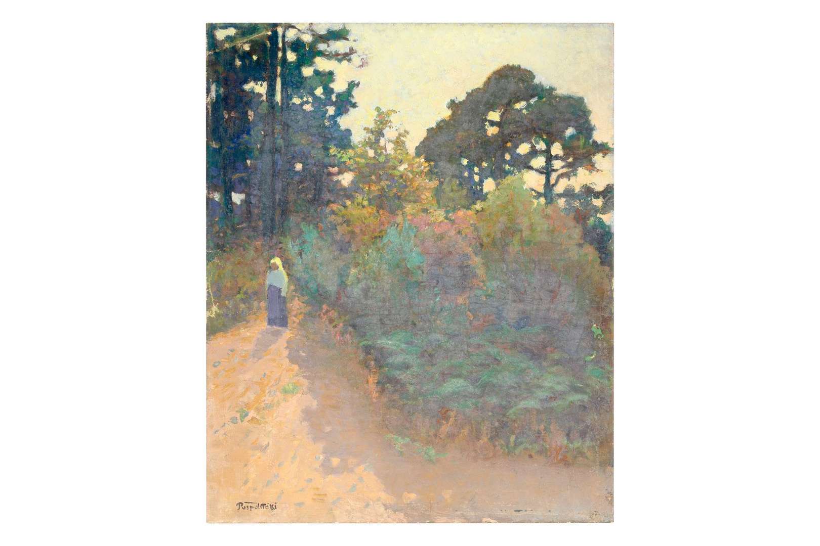 Evgeni Ivanovitch Pospolitaki, dit Eugène Pospolitaki, est né en 1852 à Temriouk, dans le Sud-Ouest de la Russie. Il est le fils d'un sergent de l'armée russe. À 21 ans, après une formation en génie civil et en bâtiment, il s'inscrit à l'Académie des Beaux-arts de Saint-Pétersbourg. Une fois diplômé, il se rend à Moscou où il séjourne de 1875 à 1879. La Galerie Tretiakov lui fait l'acquisition d'un tableau peint en 1877 : "Le soir". L'année suivante, l'artiste prend ses quartiers à Paris, alors capitale des arts. Sensible au travail sur la lumière engagé par les Impressionnistes, il peint des bords de mer avec une palette divisée de tons vifs. De retour en Russie, Pospolitaki participe au Salon des amateurs d'art de Moscou aux côtés de Viktor Mikhaïlovitch Vasnetsov (1848-1926), Isaac Ilitch Levitan (1860-1900) ou encore Valentin Aleksandrovitch Serov (1865-1911). Il regagne Paris en 1889 et prête, pour l'Exposition universelle, une toile intitulée "Sommet de l'Elbrouss | - Caucase". Il reçoit à cette occcccasion une Mention honorable. En 1892, il présente "Le mont Uzhba" à la XIIe Exposition périodique de la Société Moscovite des Beaux-Arts. L'année suivante, il s'installe à Iekaterinodar (Krasnodar) afin d'enseigner à la première Académie de peinture pour femmes. Conjointement à cette activité et grâce à l'héritage de son père, Pospolitaki fonde la première école privée de dessin au rez-de-chaussée de sa maison. L'école sera reprise en 1905 par l'un de ses élèves, un certain Stupnikov. Pospolitaki retourne ensuite à Paris et s'essaie à la critique d'art. Quatre années plus tard, en Russie, il expose une série de paysages du Caucase à la IVe Exposition de peinture de la Société des artistes sans parti de Saint-Pétersbourg. De nouveau à Paris en 1911, l'artiste peint "La Tour Clovis (Paris), ancienne tour de l'Abbaye Sainte-Geneviève, peinte depuis l'arrière du Panthéon". À l'arrière du tableau, une étiquette mentionne le 4e Salon du mobilier, section Beaux-Arts (Paris, Grand Palais des Champs-Élysées). La fin de la vie de Pospolitaki est peu documentée. Il a probablement vécu à Saint-Pétersbourg jusqu'à sa mort vers 1915.