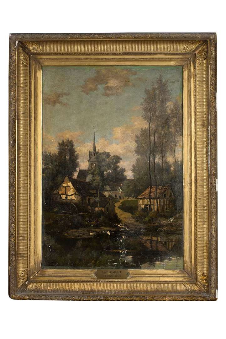 (Lacunes de couche picturale, restaurations anciennes et cadre très accidenté et avec des manques)