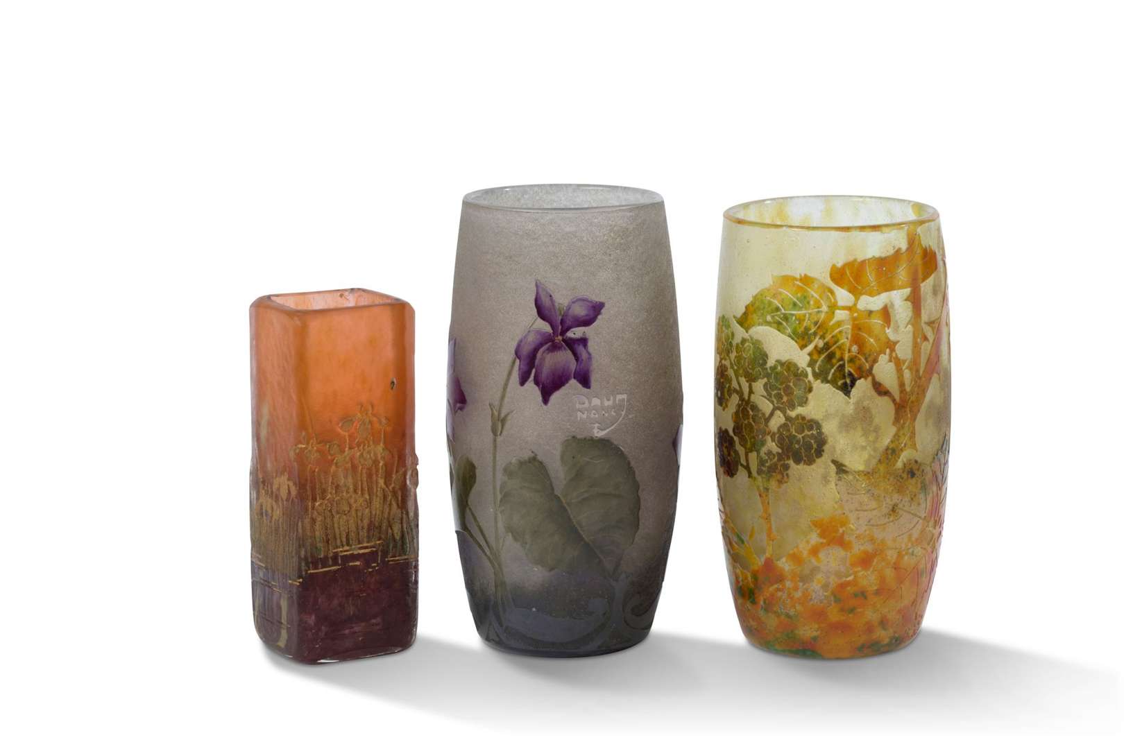 Signatures gravées à l'acide et émaillée "Daum Nancy"