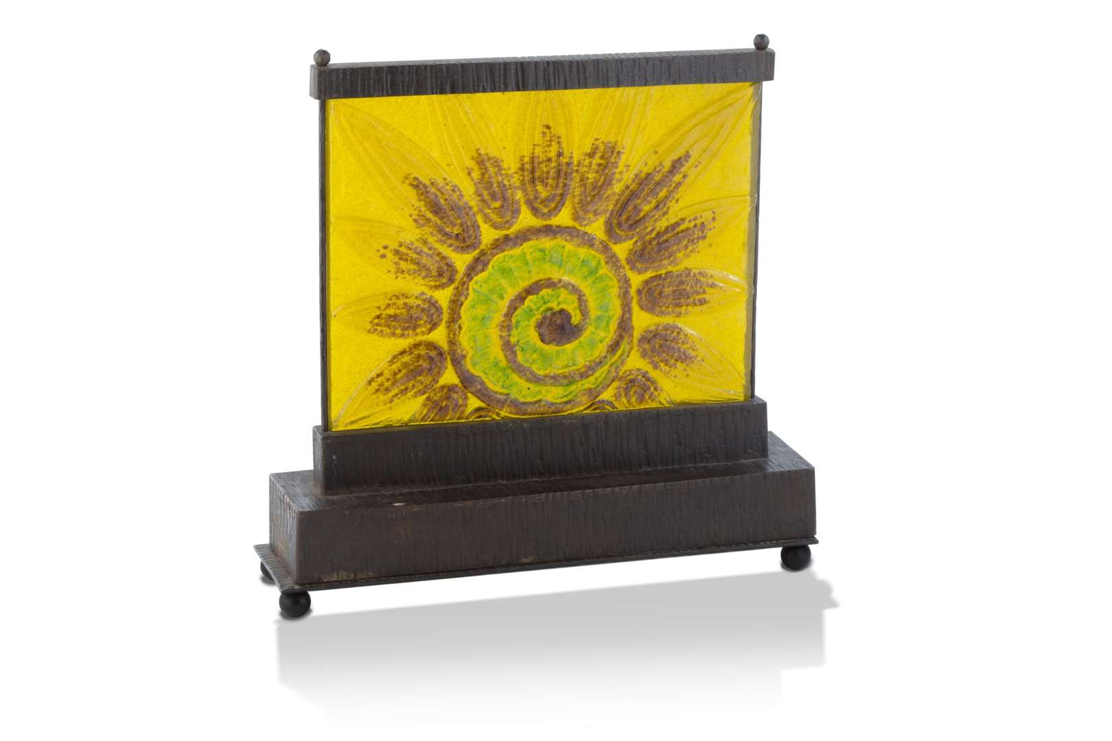 En pâte de verre polychrome, socle d'origine en fer forgé