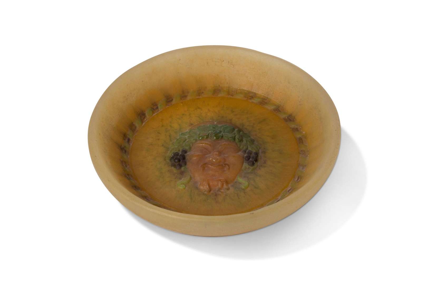 En pâte de verre polychrome, à décor en relief de Bacchus
