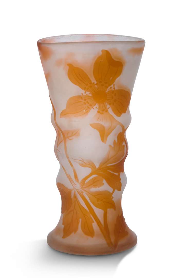 En verre multicouche orange, à décor gravé à l'acide de fleurs ~