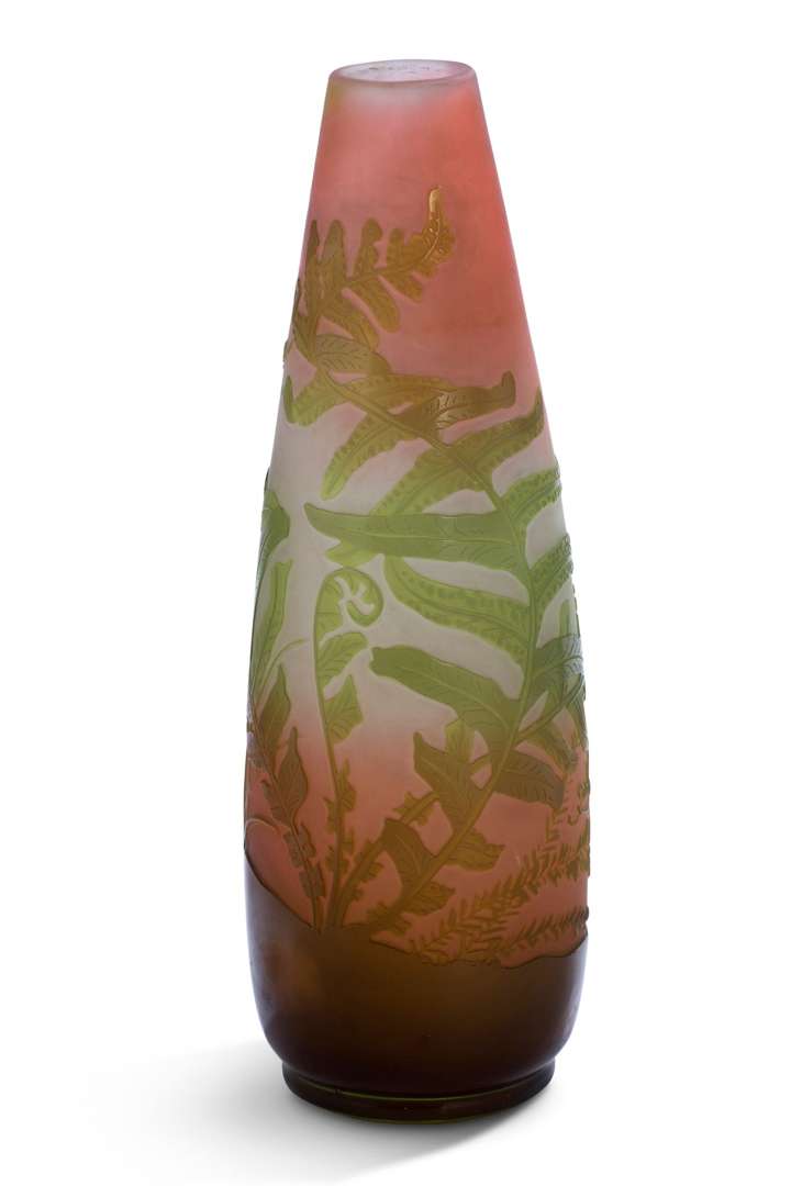 En verre multicouche, à décor gravé à l'acide de fougères.~