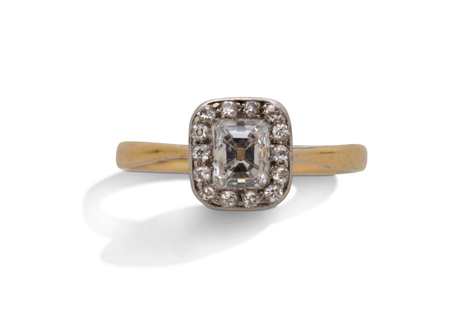 Diamant rectangulaire à degrés, entourage diamants taille ancienne