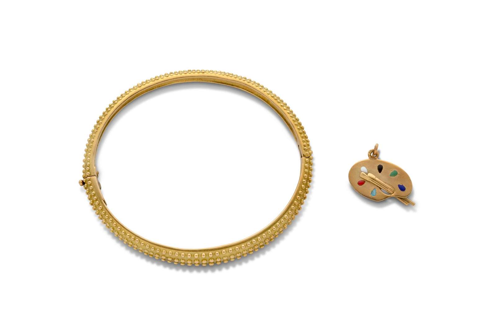 - Pendentif "Palette de peinture", or 18k (750) et émail - Dim. : 1.3 x 2 cm env. - Pb. : 1.9 gr
