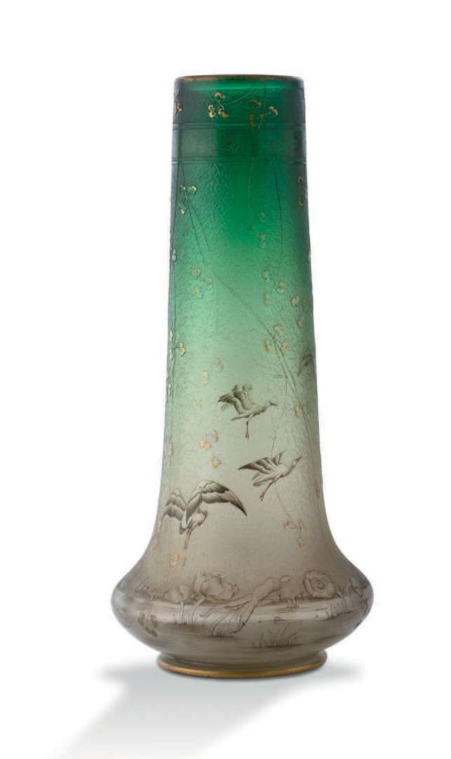 à l╔acide et émaillé d╔un vol de grues, émaux gris,~
