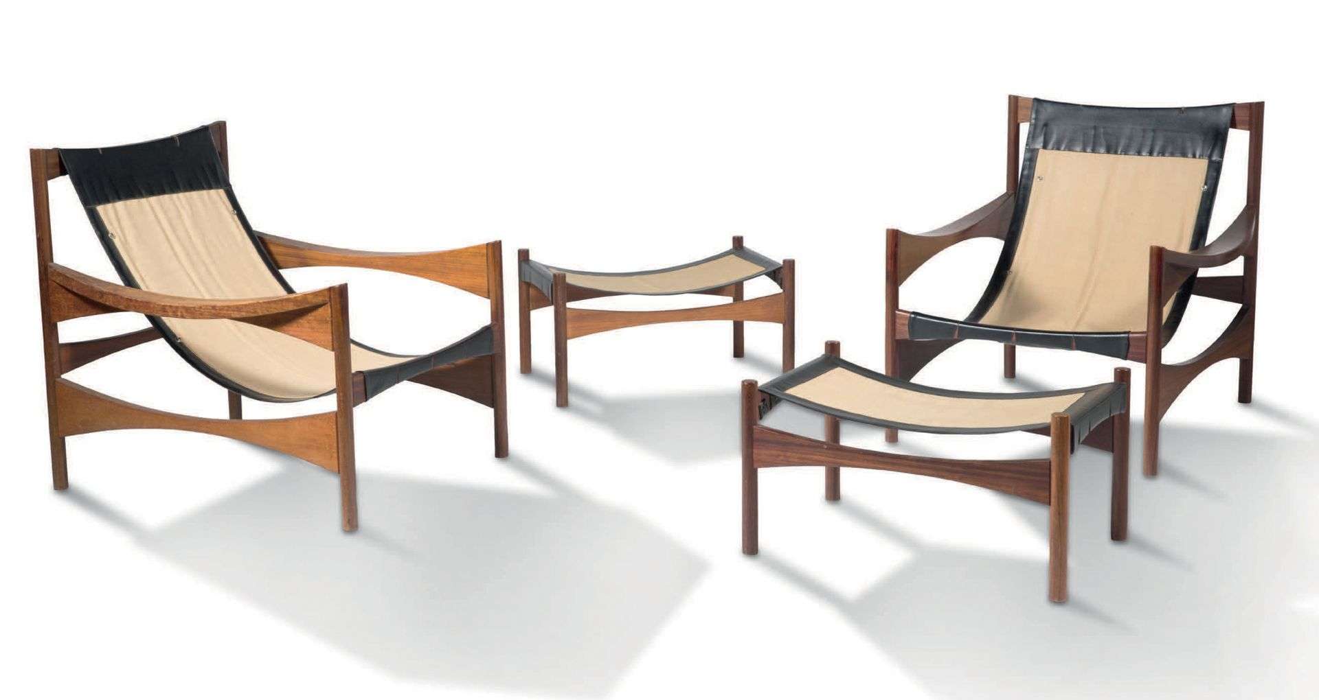 PAIRE DE FAUTEUILS ET LEURS OTTOMANS, 1962