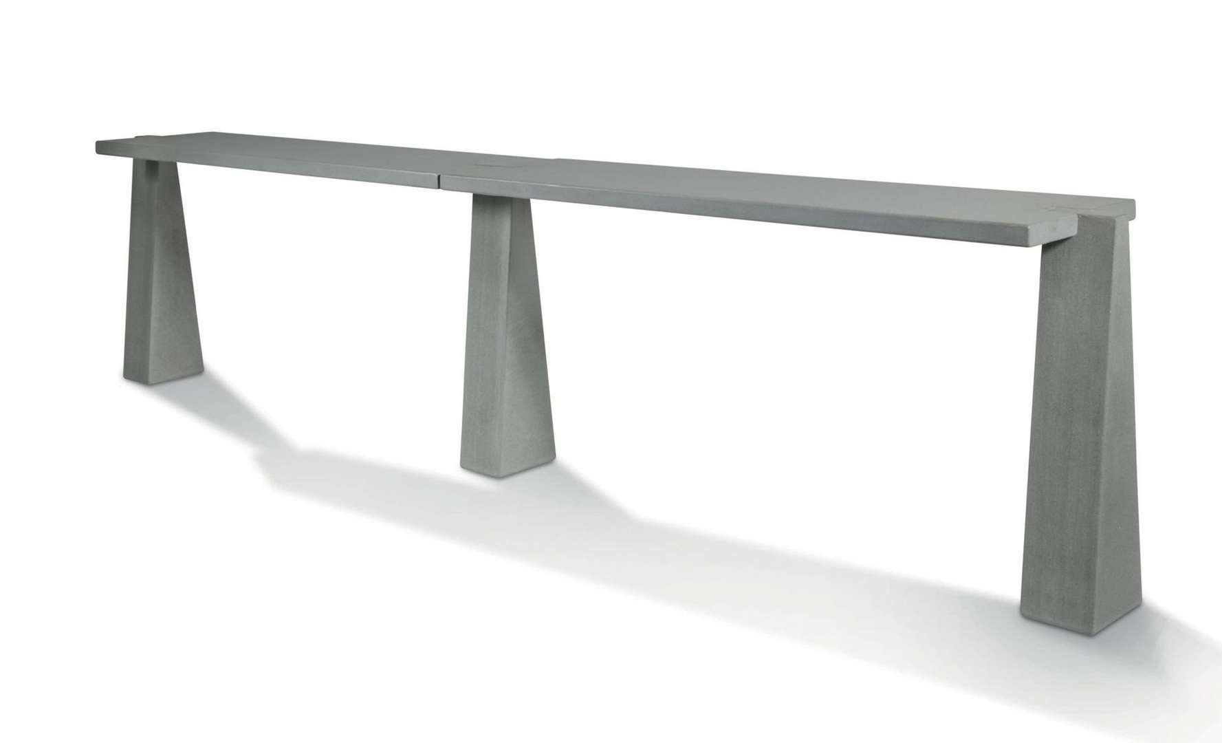 Piètement tripode soutenant un double plateau rectangulaire en pierre de Serena.