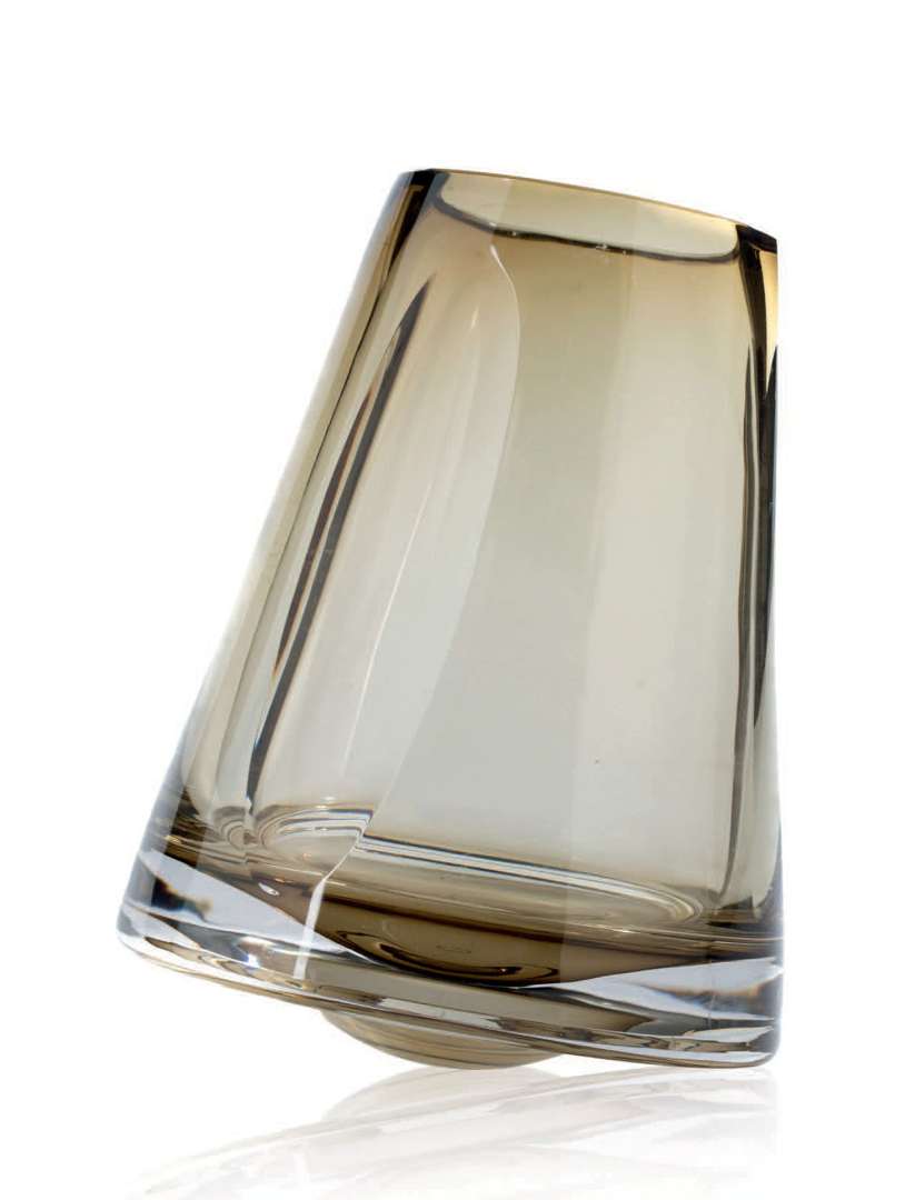 En cristal fumé et translucide, corps tronconique, base bombée.