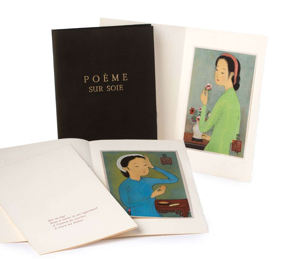 Oeuvre de Pham Van Ky, illustré de reproductions de huit dessins sur soie de Mai Trung Thứ portant la signature et le seau de l'artiste. Le livre est présenté sous une couverture de soie noire et un emboîtage de carton rigide noir. Cet ouvrage porte le n°226. Éditions Euros, Paris. Ateliers L'Ibis et imprimerie Daragnès, Paris, 1961