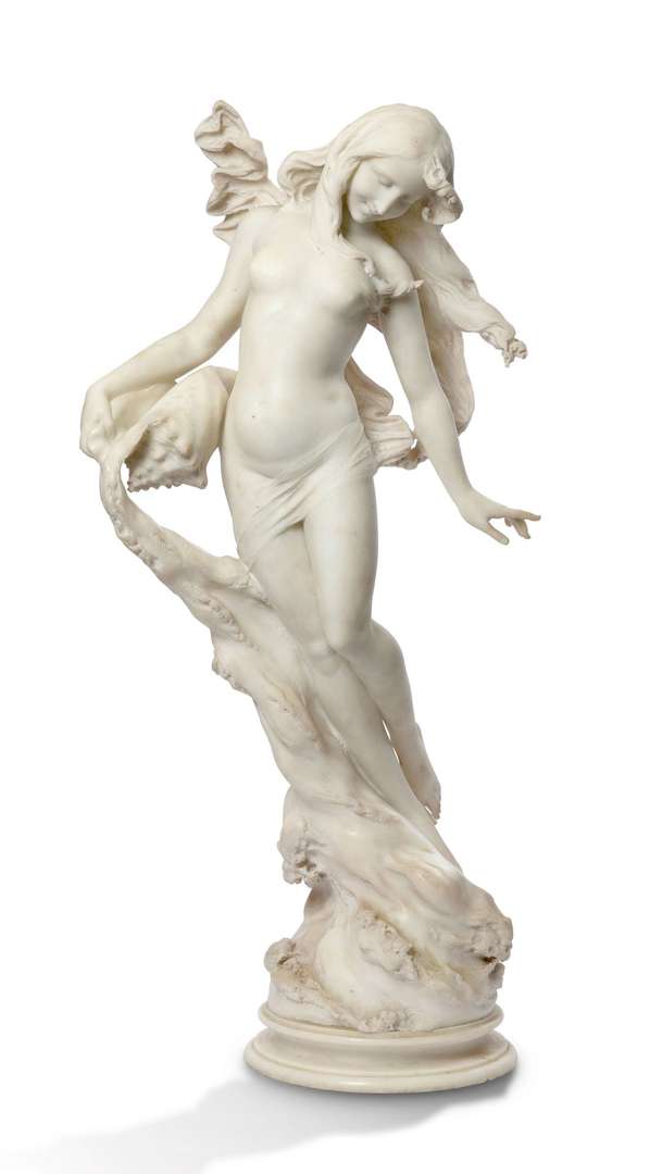 Ferdinando Andreini (1843-1922), Néréide, marbre, 105,5 cm, in. Vente, European Art Part II, Christie's, New York, 16 octobre 2020, lot 30 (signé ‘F[erdinan]do Andreini/Scolpia Firenze/1874')