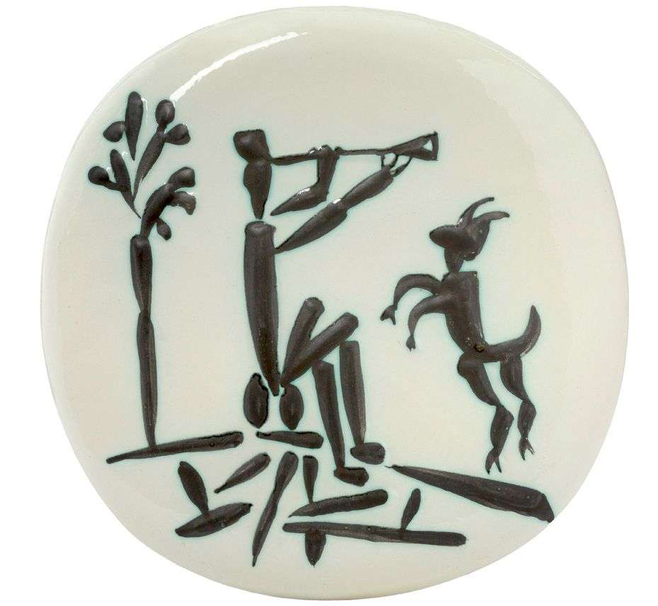 Plaque murale convexe ‘Joueur de flûte et chèvre', 1956 [A.R. 382]
