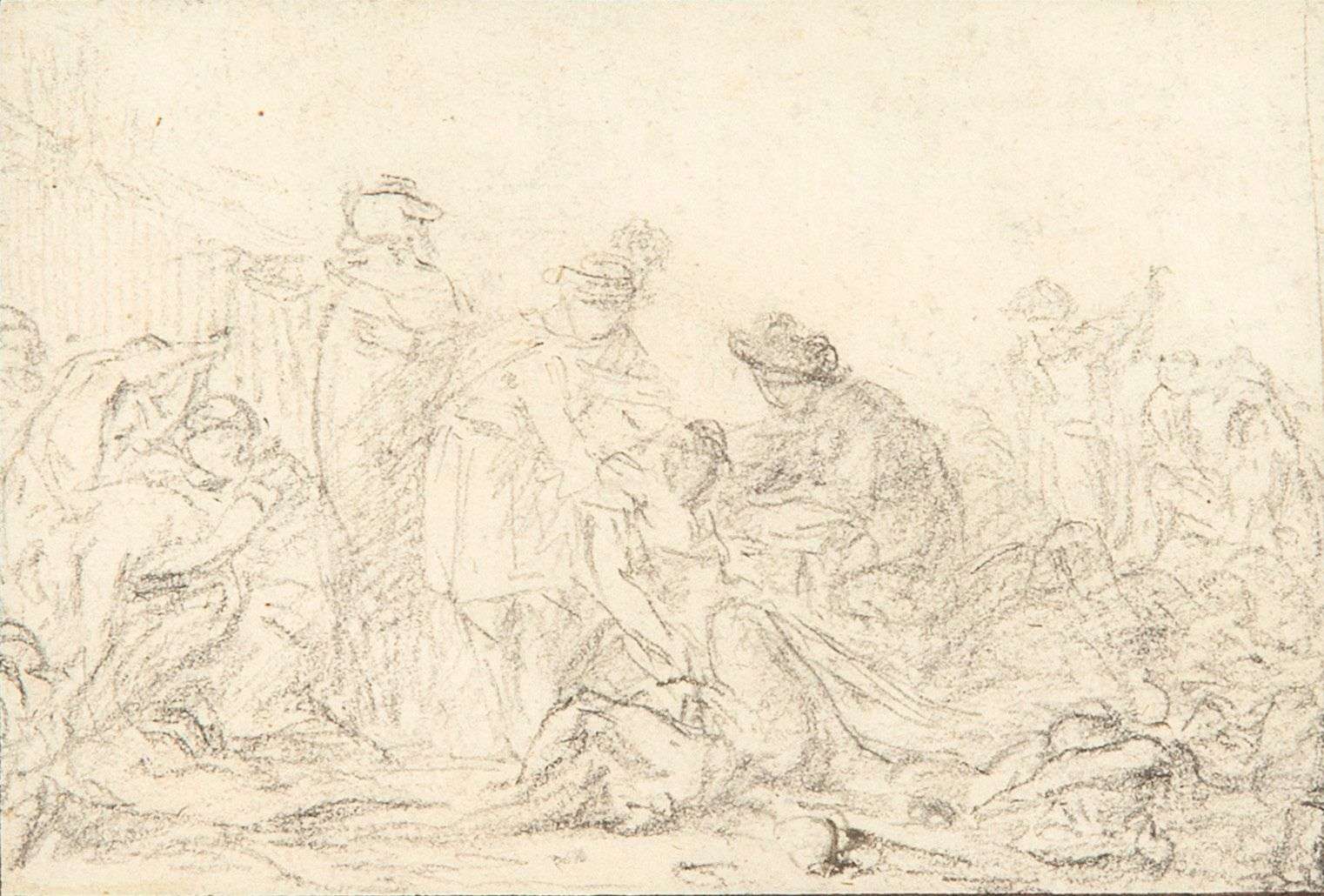 Plus connu comme dessinateur ornemaniste, Jean-Démosthène Dugourc se présente là où nous ne l'attendions pas en réalisant ces esquisses inspirées d'épisodes de l'Histoire de France. À l'instar de celles directement tirées de l'histoire henricienne (voir les oeuvres en rapport conservées au musée national du château de Pau), c'est de la vie de saint Louis (1214 - 1270) dont il s'agit ici.
