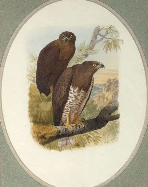 XI - Deux bondrées apivores (pernis apivorus), aquarelle.