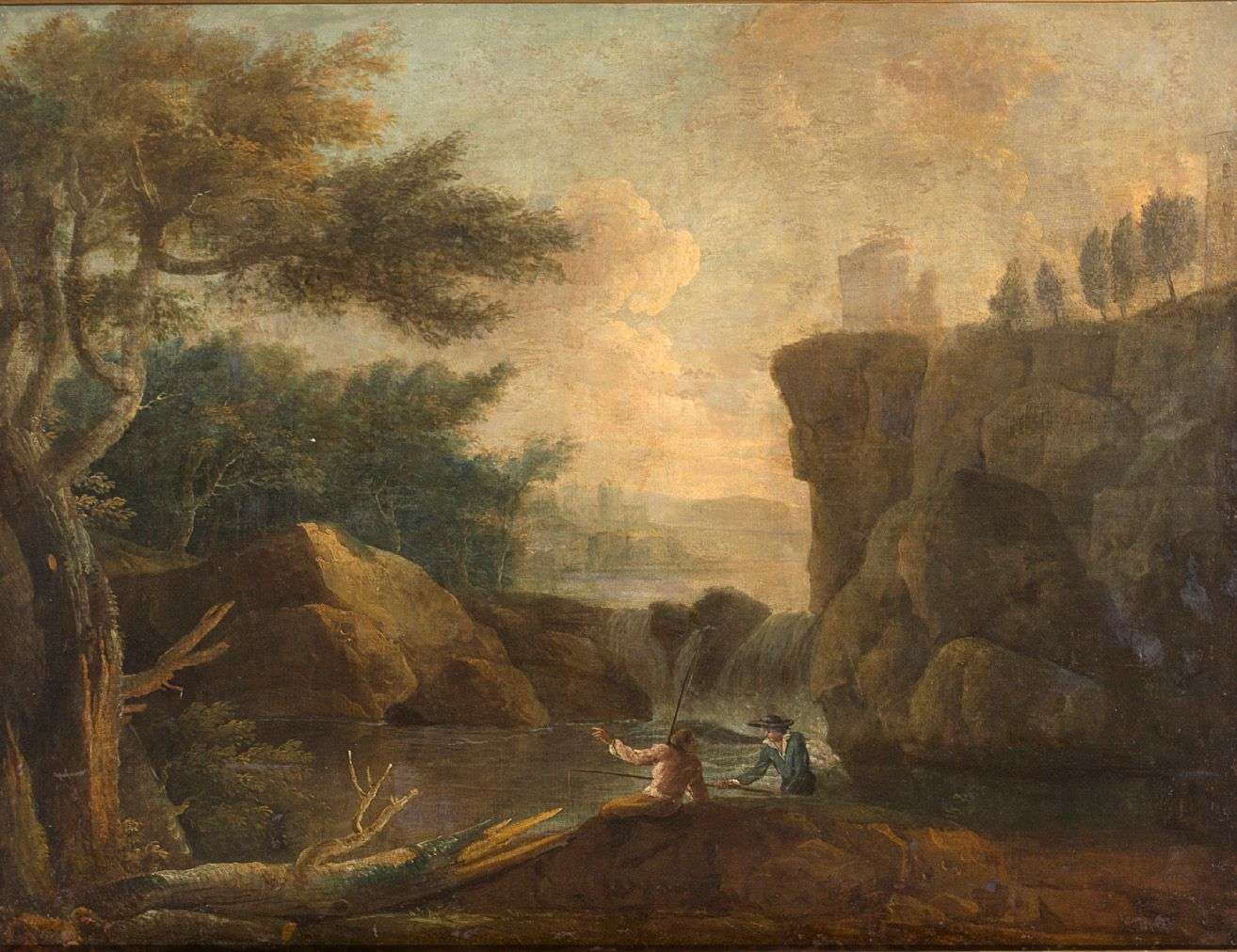 Pêcheurs au bord de l'eau dans les environs de Tivoli