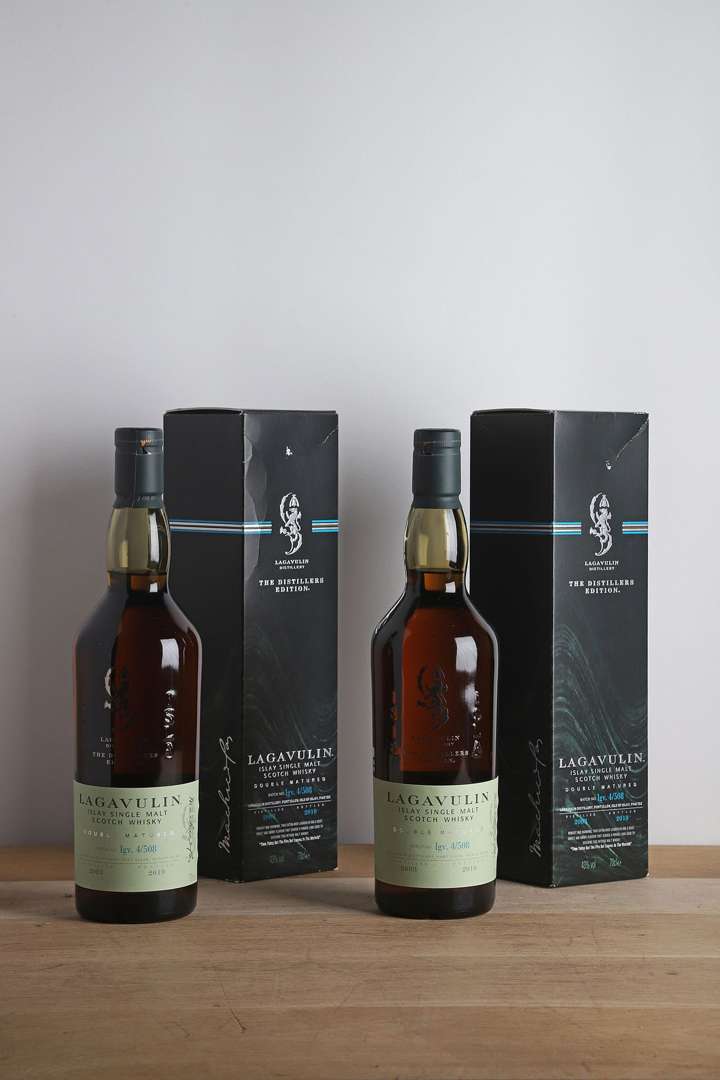 2 B ISLAY SINGLE MALT SCOTCH WHISKY DOUBLE MATURED DISTILLERS EDITION 70 cl 43% (étuis d'origine) (Igv 4/508| distillé en 2003| mise en bouteille en 2019) - NM - Lagavulin