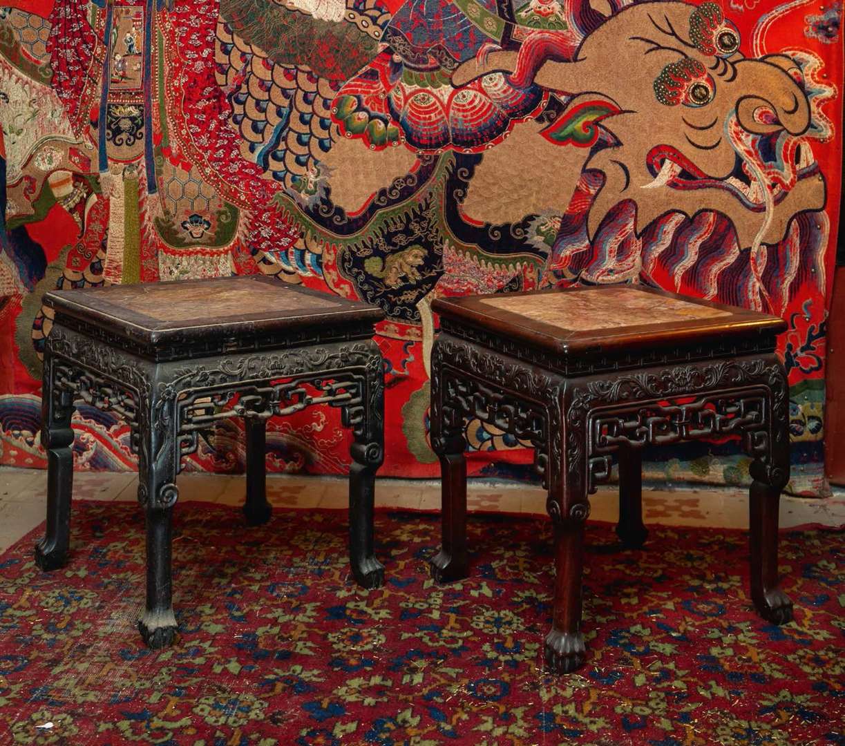 (L'une avec plateau accidenté, le marbre cassé-restauré)