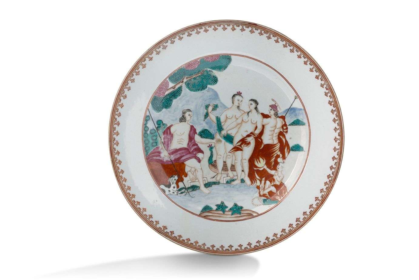 En porcelaine aux émaux de la famille rose et rehauts d'or décorée dune compsoition représentant le «Jugement de Pâris».