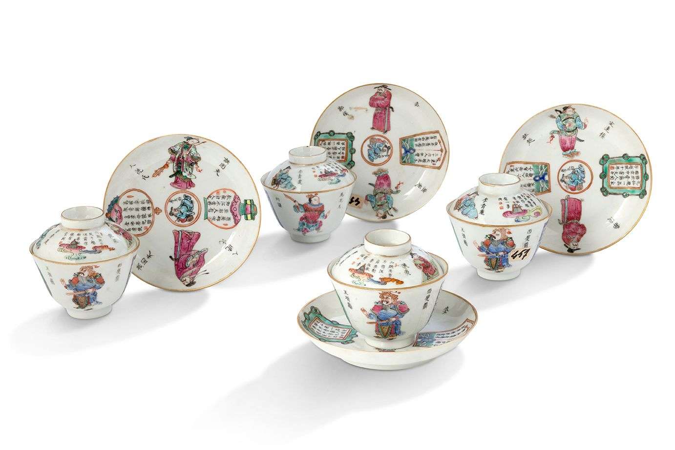 En porcelaine aux émaux de la famille rose décorées de héros du Wu Shuang Pu.