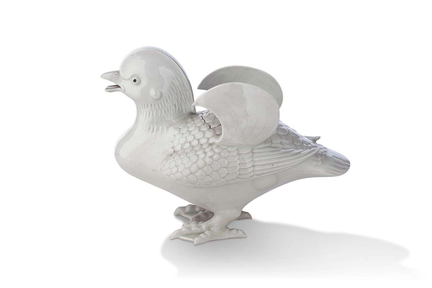 Brûle-parfum en porcelaine d'Hirado en forme de canard mandarin, le plumage finement détaillé.