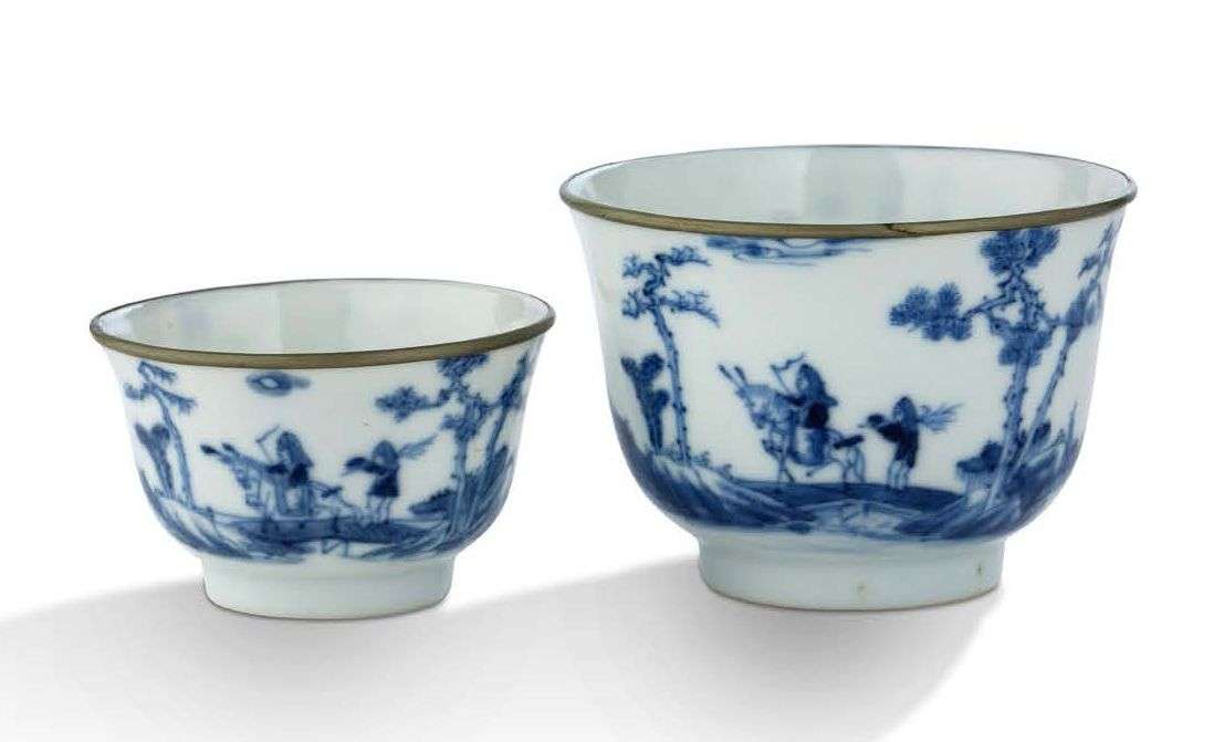En porcelaine bleu-blanc, à décor d'un personnage cheminant sur un âne accompagné par un serviteur. L'ensemble complété par un poème. La lèvre cerclée de métal. Marque Dang trai tran ngoan («Objet précieux du lieu de repos») en bleu sous couverte sur la base.