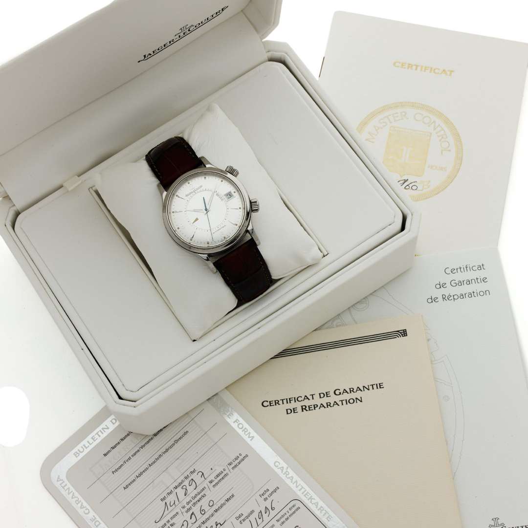Avec : un écrin, une surboîte, un certificat JLC, un bulletin de garantie JLC, deux certificats de réparation JLC