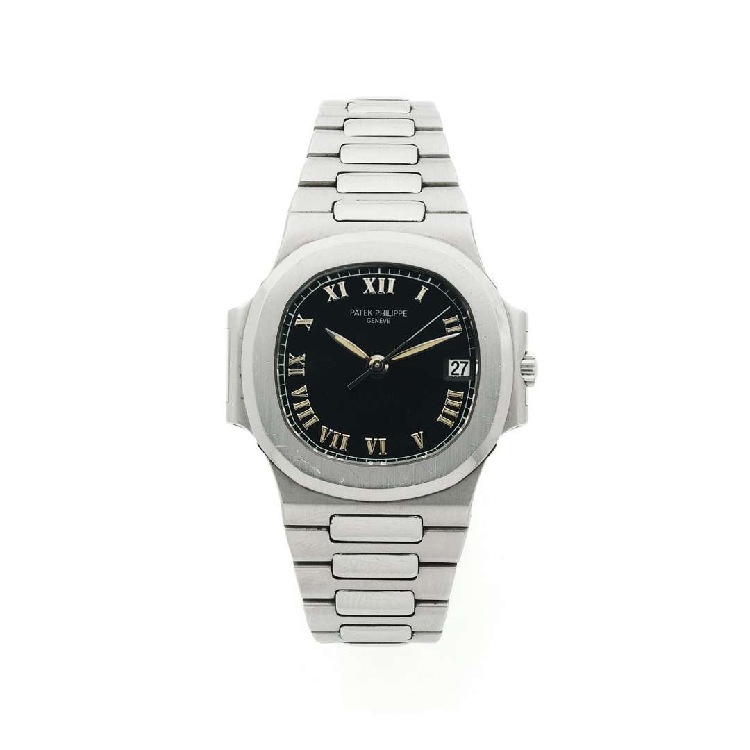 La Patek Philippe Nautilus référence 3800 a été produite entre 1981 et 2006. Il existe plusieurs versions de cadrans dont cette dernière avec les chiffres romains. Notre exemple présente une rare patine du temps sur les index.