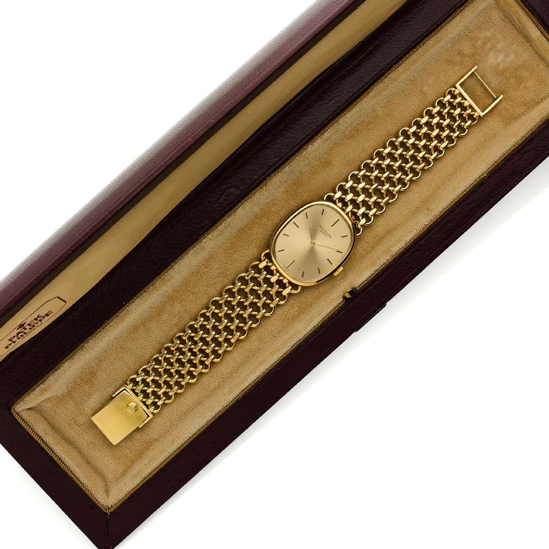 A 18k yellow gold manual winding wristwatch by Patek Philippe with a presentation case