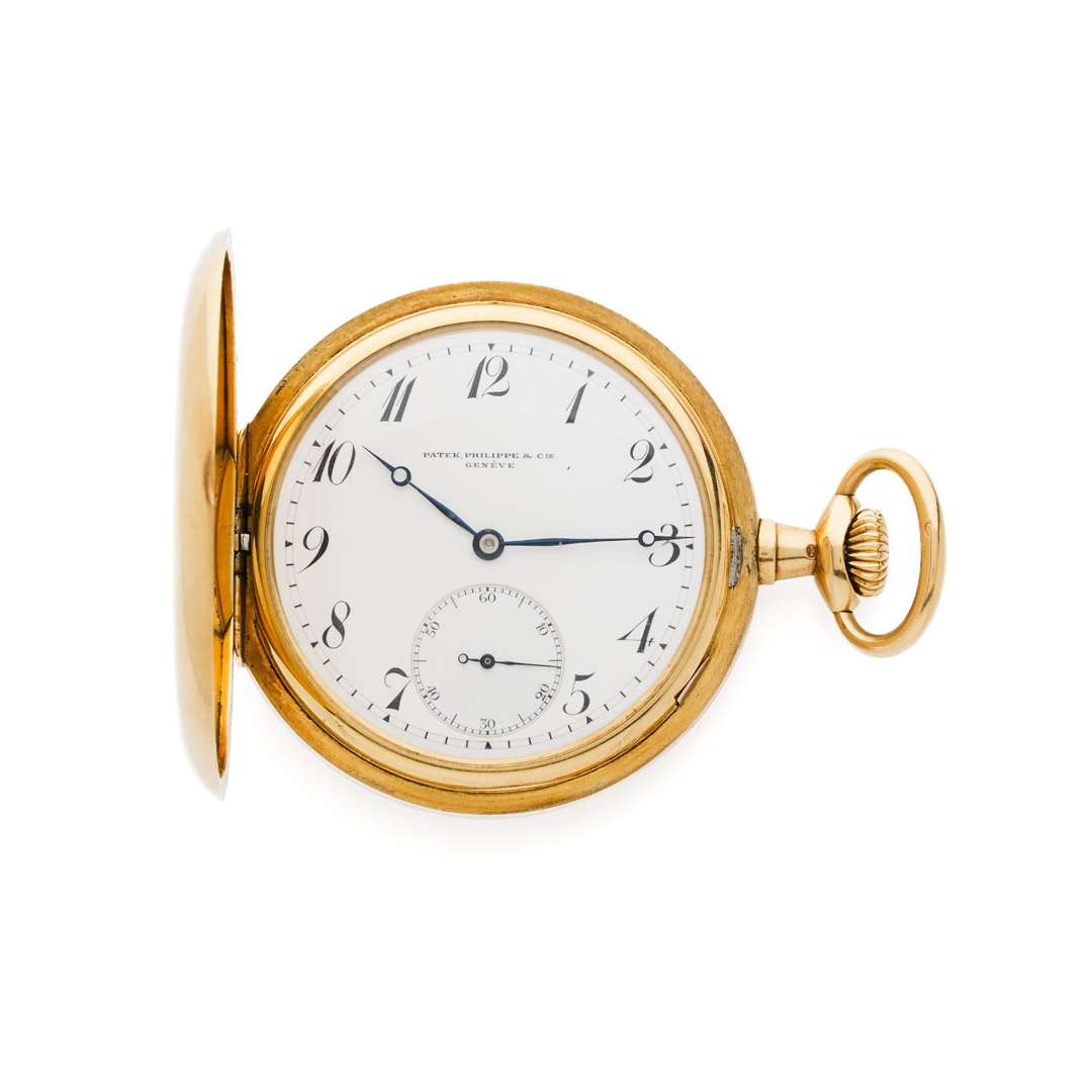 A 18k gold keyless hunting cased pocket watch by Patek Philippe