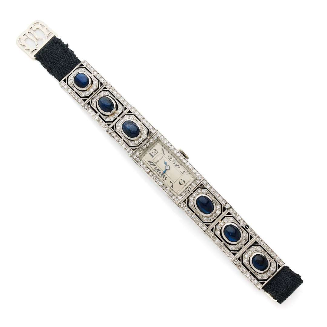 A platinum and diamond manual winding lady's Art Deco with sapphire cabochon attributed to Zenith